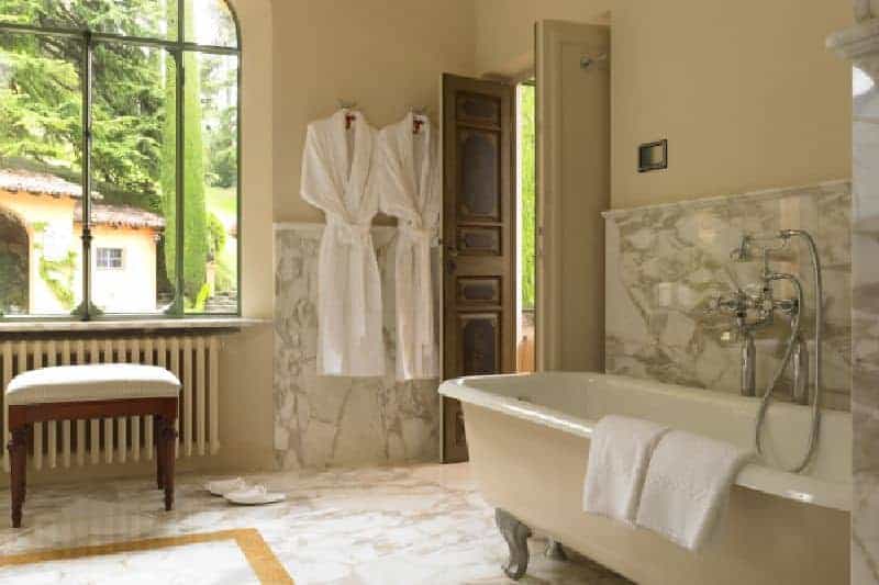 The only possible way of reaching this luxury paradise is by boat, from the lakeside village of Lenno, in which you are transported to one of the most exclusive ‘dream’ properties anywhere in the World. Situated, on a peninsula bordered by the expanse of Lake Como the luxury villa is secreted at the foot of a cliff. West-facing and nestled within and immense three-hectare gardens, this property is utterly secluded and blessed with fantastical lake and sunset views. The luxury villa’s original section is a 19th century construction of imposing elegance within a fantastical romantic setting (think ‘Sound of Music’!). Following meticulous renovation and refurbishment over three years, the luxury property is arguably the best on the lake and you will be left breathless by its sheer scale and awe-inspiring setting. Pictures do no justice to convey the immensity and the tranquility of this property, so be warned that a stay here may well prove an overwhelming experience! The fine attention to detail includes the superb arrangement of living spaces and maintenance of seemingly never-ending grounds. From the very moment the villa comes into view from the boat you immediately can realise what a unique experience lies ahead and you will alight from the boat and step up through ornately gilded sentry gates. The colonnade entrance, with a guard of honour formed by a trellis of climbing and flowering plants, leads into the main house where antique furniture and art pieces are suitably choreographed with the finest furnishings and fittings. The décor is precise and everything here is of the highest standard and arranged with suitably quality amenities, including the latest in technology and home entertainment systems. Outside in the grounds there is an infinity swimming pool set on a paradisal terrace that provides a captivating lake view, imposing conical pine trees stand sentry to lush lawns and terraces. Towards the upper reaches of the grounds there is an all-weather tennis court and the property is not only flanked a fragrant alpine forest but also the calm and crystalline alpine lake. It is serenely secluded and intensely peaceful here.