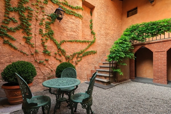 The luxurious private villa for two sits within 10 hectares (25 acres) of the Villa d’Este grounds, one of the world’s most coveted hotels by the shore of Lake Como. The estate is notable for the beauty of its mosaic gardens and its Nymphaeum. By car, the property is less than an hour from the airports at Malpensa or Lugano and around eighty minutes from Milan Linate. Like the hotel, this hidden, secluded villa remains a unique place; intimate, full of character and, quintessentially, evokes a bygone era of romantic elegance and sophistication. The inner ambience is mellow, the decor is refined and brightened by full windows that frame different aspects of the beautiful surroundings. The enchanting villa has a lounge, a fully equipped kitchen and a king-size master bedroom, with a walk-in closet and in-laid marble en suite bath and shower. On the outside, a furnished garden terrace offers a delectable spot for pacific relaxation and private dining al-fresco. Another special feature is a tranquil and shaded inner courtyard, one level lower to the living quarters, with the fragrance of jasmine and wisteria.
