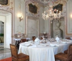 The villa is available for only six months of the year and is arranged to accommodate up to a maximum of 12 guests in its 6 stately bedrooms en suite, which are all on the ground floor of the building.   The upper floors are home to a private museum of and guests may view these collections only if accompanied and with the consent of the owners.   This unique luxury villa ought to be a “must visit” for lovers of resplendent and patrician heritage.   It is apt to note that this residence can be quite overwhelming and may prove daunting even to history aficionados!   It is definitely not a suitable place to bring children due to the priceless historical furnishings.