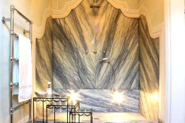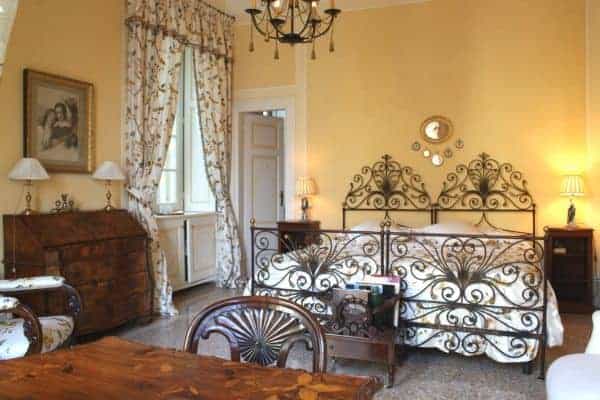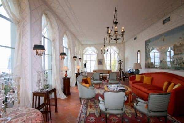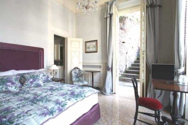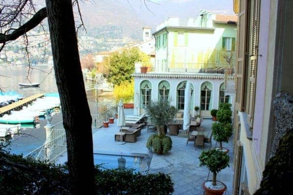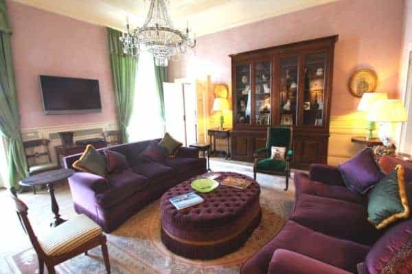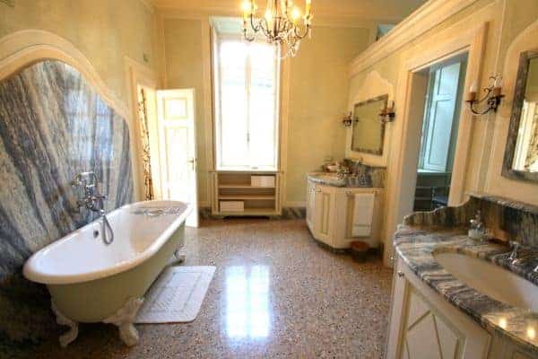 As you arrive at the scenic village of Torno on the banks of Lake Como opposite Moltrasio and you will encounter a pedestrianised centre, at the end of which is this surprising luxury villa. It is one of the most beautiful private lakefront properties available and getting there is an adventure in itself. Access is on foot only, but the villa has a small car with driver that will porter your luggage from the edge of this atmospheric village with its maze of narrow and stepped walkways, staircase passages and low-archway alleys, to water’s edge. On the way down (500 metres) you may want to stop at enticing craft shop or be tempted for a drink with the locals in the bar on the marina to watch the local fishermen at work. By the time you arrive at this quiet corner villa and step through its unassuming main entrance, it feels like home and the florid splash of light and joyously bold colours will lift the senses. The entrance hallway continues, elongated, as the main corridor that connects the airy and elegantly antique-furnished rooms of this lovingly maintained family villa. It has remained, architecturally, unchanged since its construction in the eighteenth century and now modern amenities and technology are added for extra comfort and convenience. The specially designed marble bathrooms convey art-deco overtones and impress by their arrangement of free-standing bathtubs, retro fixtures and double-height windows. The living room has a remarkable gallery of double-height bay windows looking out to either the lake or open to the villa’s delightful lower terrace lined with lemon trees in gigantic terracotta pots and a hidden hydraulic swimming pool, which rises and submerges effortlessly on the press of a button switch.