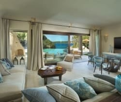 There are 2 modern spacious double-bed bedrooms en suite and 1 single suite for up to 5 guests and it is a luxury villa arranged for the enjoyment of all forms of Mediterranean life in the open. On the villa’s main terrace can top up on your quota of tanning and summer bliss in the beautiful garden, in which pine trees, shrubs and flowers provide aromatic sensations and some shady spots in which you can lie back and relax. Guests can enjoy top of the range technology and hotel amenities, as they rest in private bliss pampered by the added luxury of a personal butler to fulfil all your needs and requests at any hour of the day.
