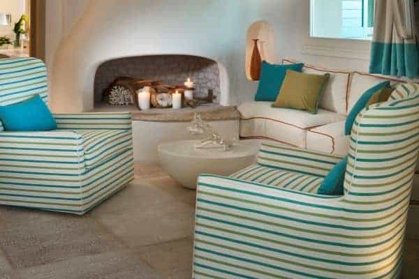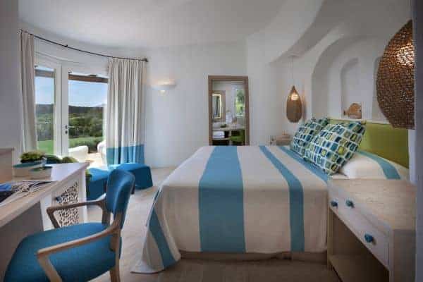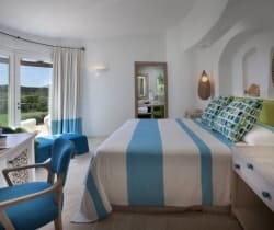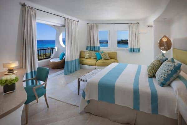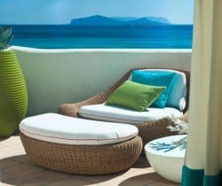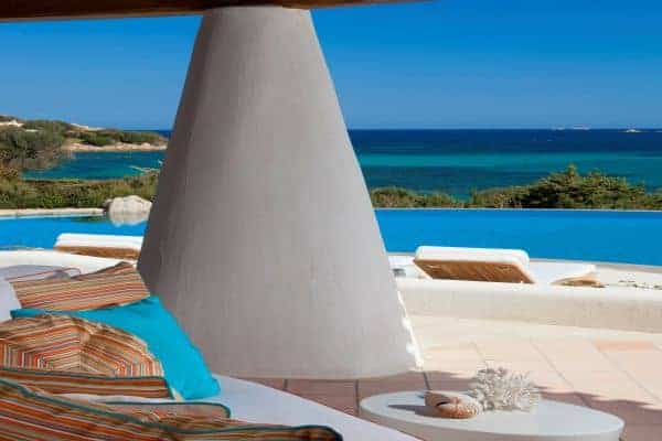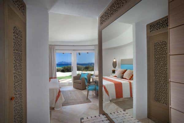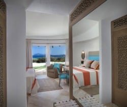 Ten to fifteen minutes’ drive north of Porto Cervo in the unique and renowned Romazzino Bay, we can present a new addition to a select set of exclusive luxury villas on Costa Smeralda. The Romazzino area has managed to retain a special mystique – particularly noteworthy for its relative seclusion and the beautiful villas that are dotted around the bay – making it the most sought after area on the Costa Smeralda, which continues to be one of the most prestigious travel destinations. First developed by the Aga Khan at the beginning of the 1960s for the international jet-set, the area is world-renown also for an impressive spread of designer boutiques, spas, fine restaurants and hot nightspots. Proximity to many fine beaches on the island heightens the attraction of this area and this luxury villa will no doubt add to its allure. There are the most captivating views of the bay from the villa, even though it is secluded within the gardens of deluxe 5-star villa-hotel compound. The property has its own private and large swimming pool even though guests are literally just a hop skip and jump away from a large beach in the bay. Inside, the commodious interior living spaces are bright and chic, yet restful and finely appointed with lovely touches, such as unique local masonry and furnishings upholstered with artisanal and hand-made fabrics. These breezy communal living spaces are admirably surrounded by expansive curved picture-viewing windows through which to enjoy the scintillating landscape and which allow sea air and sunlight to floods the entire villa – main living areas and private bedrooms alike. There is even under-floor heating for added and luxurious comfort, outside the summer months.