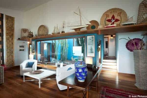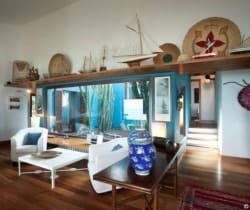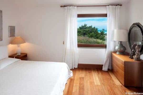 If you have not visited this area of Sardinia you probably have not yet seen the best sea in Europe. Simply said. Stintino, a small village set in the extreme North-west point of the island is the location of this sober and elegant villa, one of the most beautiful properties on the coast. This is a real “owners’ home” that offers understated luxury and an amazing view on Isola Piana and Isola Asinara, a national marine, protected park, where the sea has colours you just cannot imagine. Recently refurbished, this luxurious villa shines with its white walls among a lush private garden, just a few steps from the beach. Marine colours and décor are found throughout and, together with wood and large windows create a warm ambience, with lots of light. Comfort, simple style and high quality are the clear characteristics of this villa, while the design chosen by the owners creates a link between the property and the surrounding landscape. The ample French windows will grant a magnificent and unique view of La Pelosa Tower and of the crystalline and turquoise sea while the sunlight will flood the entire house.