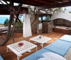 Set on one floor, the villa sleeps up to 8 in 4 spacious bedrooms with modern bathrooms. Outdoor and indoor living spaces will let you savour your time in Sardinia from a unique location, enjoying both comfort and privacy and a first row seat on an amazing natural masterpiece. The private garden, the small pool (6×3.5) with hot tub and sun beds are the ideal setting to sunbathe and swim, while the terrace with the outside kitchen and the al fresco dining areas become the perfect place to chill out and dine together, even when the Maestrale wind blows. The villa also comes with a luxury boat, a Mochi Craft 51, that can be rented on a daily basis with staff, for excursions in the beautiful surrounding area.