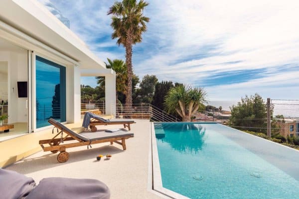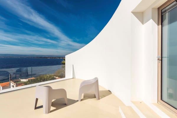 There is 1 en suite double bedroom on the ground floor, and 2 en suite doubles on the first floor, with each offering a sea view and private terrace. Various hidden nooks and crannies can also be found in the open plan living and dining room, with al fresco dining and barbecue space also available.