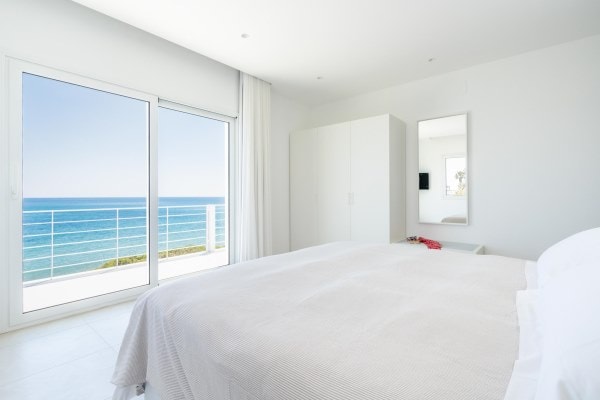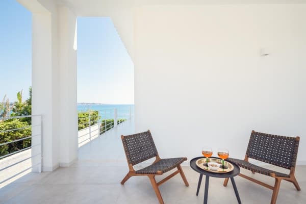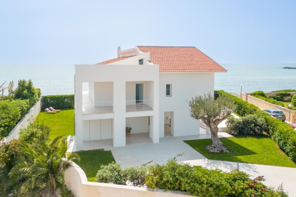 Pristine white beach villa with direct access to the turquoise Ionian Sea