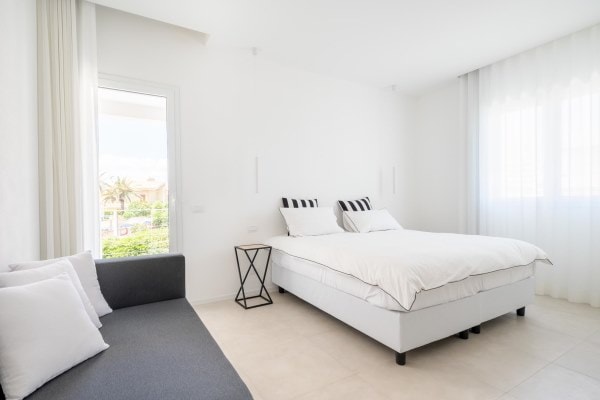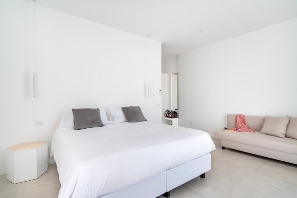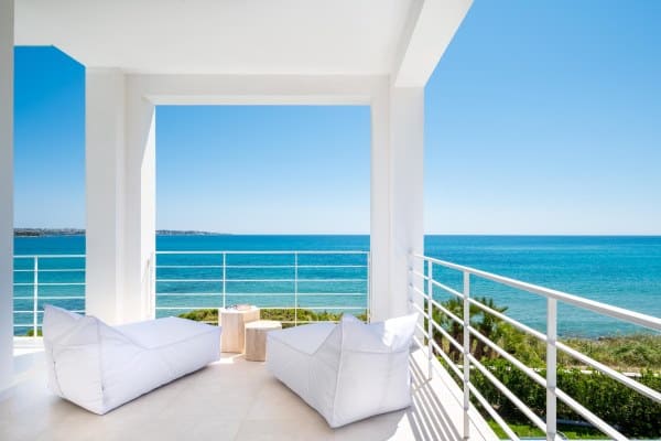 This pure-white pearl of a villa is just a stone’s throw away from the emerald waters of the renowned Arenella Beach. Calming, sea-inspired furnishings and white-washed walls imbue the home with a breath of fresh sea air.