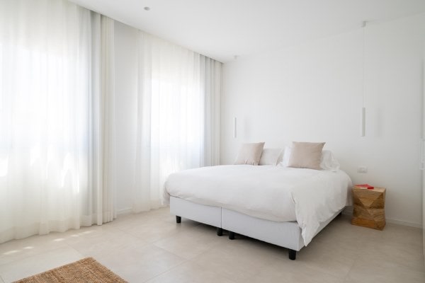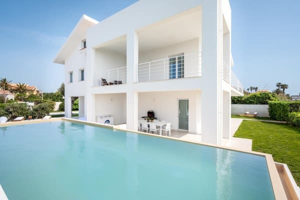 This pure-white pearl of a villa is just a stone’s throw away from the emerald waters of the renowned Arenella Beach. Calming, sea-inspired furnishings and white-washed walls imbue the home with a breath of fresh sea air.