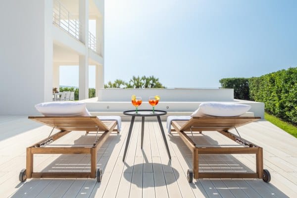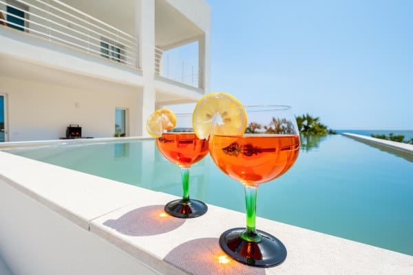 Both roomy and airy, the property can comfortably host up to 8 people (4 additional kids can be accommodated in sofa beds) over 4 en suite bedrooms, and boasts an infinity pool that looks out over the Mediterranean Sea. There are many indoor and outdoor social spaces, including an al fresco dining area, outdoor chill out area, veranda & barbecue area, and various indoor lounge spaces.