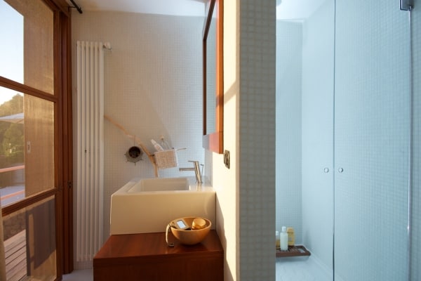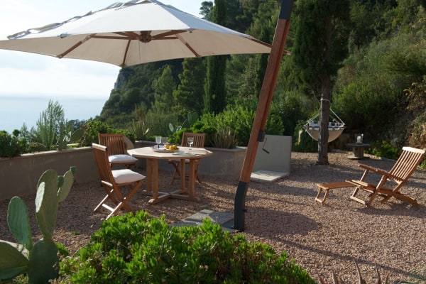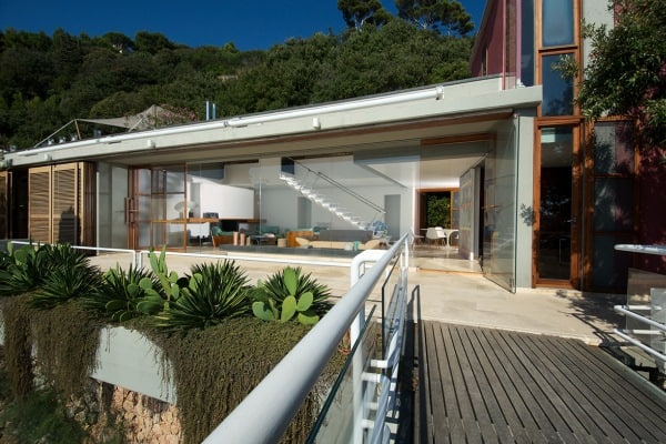 The prestigious villa stands eighty metres above the sea without neighbours of any kind and is located the thirty mile-long Maremma coast promontory that extends between Mediterranean beaches and the rolling hills of Tuscany. The property is the creation of a celebrated interior design architect, who constructed luxurious hideaway hugging the topside of a sea bluff. It is a unique property in splendid seclusion, unobstructed and exposed wherever possible to the surrounding nature and the sea. The panorama is an awesome sea view, the sensation is either hovering above or, from the infinity pool, floating into deep azure water stretching to island of Giglio offshore and the horizon behind. Bright and spacious with a modern minimalist approach to bespoke furnishings, the uncluttered décor is refined with an understated palette of neutral tones to the walls and gleaming floors. The main living area stuns with its panorama gallery of wall-to-wall slide glazing and transparent staircase extending up to a mezzanine study/office that opens onto a private shaded terrace. There are a variety of other terracing on different levels around the villa grounds; ranging from paved, wood decked, gravelled to pergola covered and win shielded.