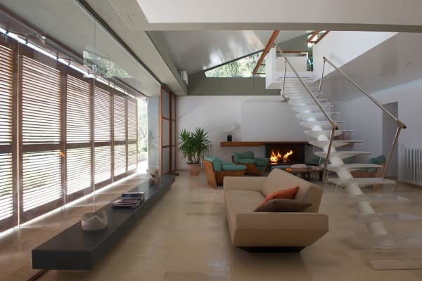| Ground floor: | Entrance hall with fireplace; Dining room with fireplace; Kitchen; Laundry; 2 Double bedrooms en suite; Guest bathroom; Mezzanine with outdoor patio; Studio/TV room |