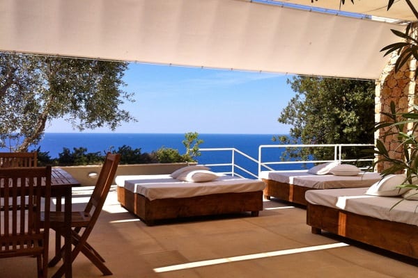 The luxury property is a composition of 5 distinct units consisting of the main living area and 4 private bedroom areas housing 9 bedrooms of varying sizes to accommodate up to 17 adults. The largest of those is arranged with a large living area with fireplace, dining and kitchen and all rooms are generally are linear and spacious, with individual entry and access, air conditioning, deluxe en suite shower and a sea-facing terrace. There is also the option of another 1-bed unit on the swimming pool level and suitable for guests or for staff quarters. The gorgeous open indoor living area together with the external outdoor dining and sitting areas are perfect for rest, relaxation and living outside in quintessential Mediterranean style, from sunrise breakfasts to cocktails then dining from sunset.