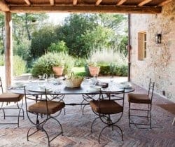 Escape urban chaos and unwind mind, body and soul at this luxury Tuscan property, which is one of a group of 9 elegantly refurbished villas nestled in an estate covered with ancient trees and lush gardens.  Perched on a quiet hilltop, this luxury villa enjoys breathtaking views of the Val d’Orcia.  It was once a stone farmhouse and is now transformed into a romantic refuge and hideaway for cosmopolites. Its restoration is of the highest quality in standard, with due respect paid to maintaining the traditional architecture that is typical of the Italian countryside.  The aim, in which the owner has succeeded, was to create an unforgettable luxury holiday stay for guests.  The property is also a kilometre from the estate’s centre (‘Il Borgo’), where there’s also a bar, shop and restaurants.  You can by arrangement make a reservation for some deluxe pampering and relaxation in the ultra-modern spa, which includes sauna and hammam.  For outdoor purists, there are many open-air activities: a vast range for you to enjoy from golf, tennis and bocce, to nature hikes, horseback riding, mountain biking, and more.  You will be in the heart of Tuscany, a mere 12 kilometres from Montalcino, which allows you also plenty of opportunity also to discover the cultural and culinary heritage of the region.