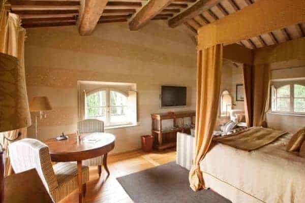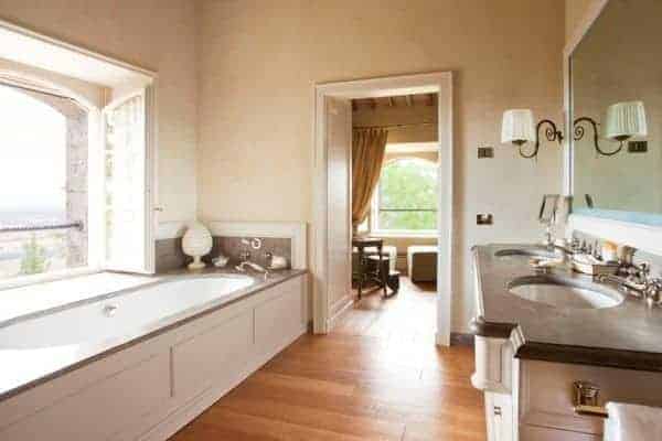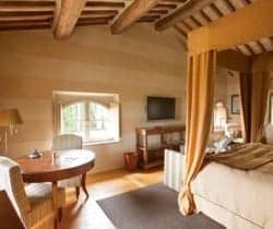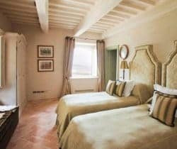 Florence, Siena and Tuscany are by-words of the Renaissance and a rich cultural heritage. This you can now experience in elegant style, and to a time pre-dating that glorious epoch, when you stay at this luxury villa that is built into walls of former medieval tower and Etruscan stronghold. Narrow and high, the villa stands on the end of promontory and offers truly sweeping 180° views of classic Tuscan rolling hills, countryside and the vast estate in which this villa is located. One of 9 newly renovated and refurbished properties on a vast country estate dating back 800 years within the Val D’Orcia Natural Park, the luxury villa is close to the estate’s centre, “Il Borgo”. However, the villa is totally private, independent and secured by gated private access. The fine refurbishment retains gorgeous Tuscan fireplaces. Due to the building’s age, rooms recall the original intimacy of castle life and for you to cocoon yourself in luxury and peaceful bliss. Outside a desirable panoramic pool and large garden opens up the world for your admirable delight and enjoyment. You can go higher up to overlook all from a wooded and naturally shaded terrace that will thrill you with outstanding views of the timeless Tuscan landscape of vineyards, orchards and rolling hills. You will even see – and possibly get to play through separate concierge arrangement – the nearby and superb championship private golf course specially designed by one of the sport’s legends, Tom Weiskopf.