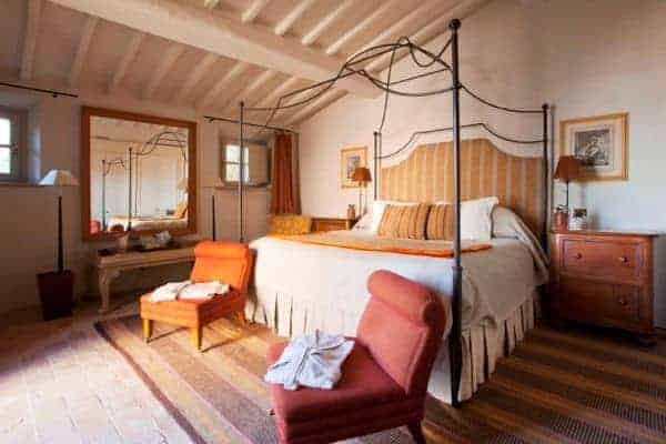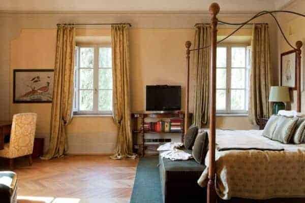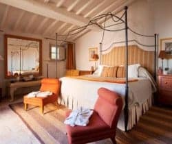 Do you dream of transporting yourself back in time, to live the life a lord of a country estate amid lush green rolling hills?  Deep in the Tuscan countryside within the spectacular Val d’Orcia Natural Park, this is an opportunity for you when you are a guest of this luxury villa; one of 9 scattered throughout an estate which dates back 800 years.  The villa has been completely renovated and refurbished to maintain traditional Tuscan ‘casale’ charm, whilst also providing all luxurious modern amenities.  Here you can enjoy a fine and relaxing holiday to become reacquainted with nature.  Roaming deer, pheasants and hares will be among your visitors, while you will also have access to many outdoor leisure pursuits that include golf, hiking, mountain biking, horseback riding and last but not least, the historical Tuscan villages all around you.  Nestled within a landscape of rustic olive groves and manicured fruit orchards , this luxury villa is nonetheless within walking distance from the hub of the “Borgo” with its restaurant, shop and spa.  This is a charming villa in which you will feel completely at home, and  which is elegantly furnished and luxuriously appointed with fine fabrics to match the warm colours of the Tuscan countryside.