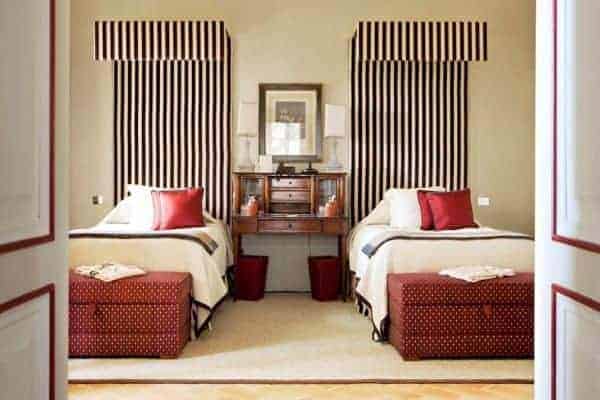 First floor: Master bedroom en suite with walk-in closet; double bedroom en suite (shower); twin bedroom en suite (shower)