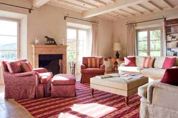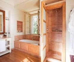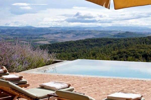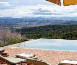 This luxury villa comfortably sleeps 8 people in 4 finely decorated en suite bedrooms distributed around the main house and in the adjacent annex.  The large living room is the heart of this villa, with its cosy sofas, authentic Tuscan fireplace and sumptuous antiques creating an intimate ambience in which to spend time and relaxing afternoons in good company.  Outside from the garden terrace and infinity swimming pool, the view of the surrounding countryside is indescribable and here you will be able to enjoy lunch served from the annexed second kitchen serving the pool.  On warm summer evenings, as the sun sets behind the green hills, you’ll want to dine al fresco and entertain your friends with such a heart-stirring panorama as your backdrop.