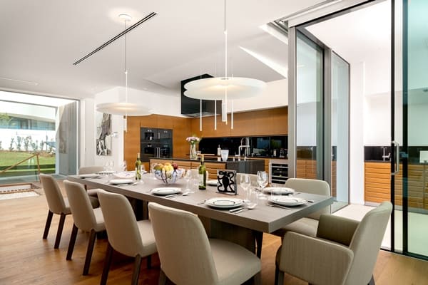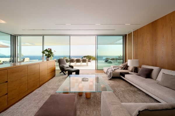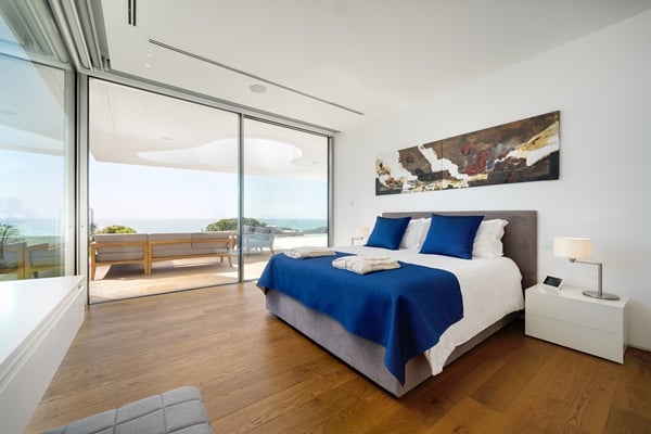 Up to 12 guests can be easily hosted in 6 bedrooms, with the master bedroom in particular boasting stunning views over the ocean, and a free-standing bathtub. The open plan dining, living and kitchen area is tastefully designed with high-quality, modern chic furnishings. A beautifully-designed basement area offers a spacious cinema room, pool table and gym area, connected to the garage.