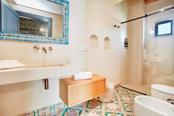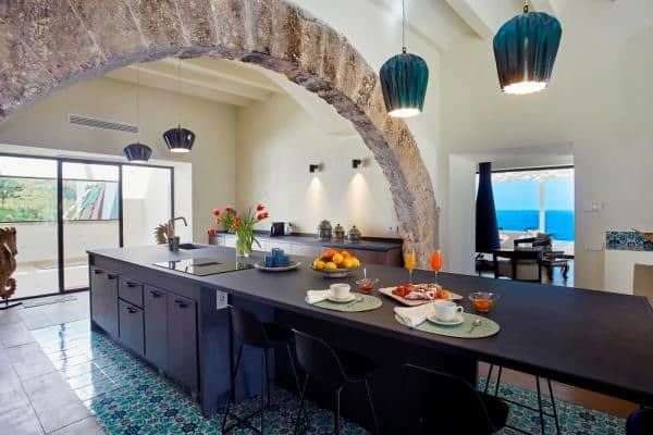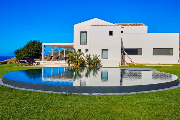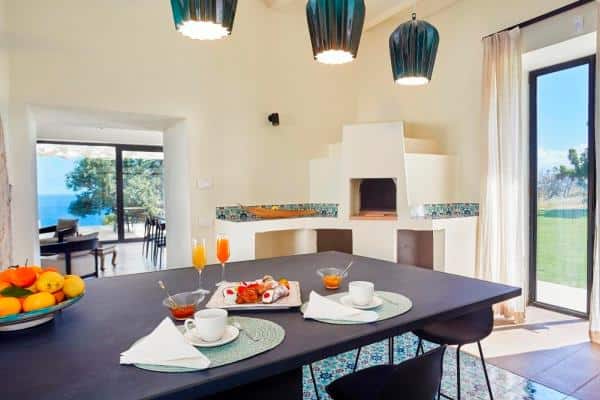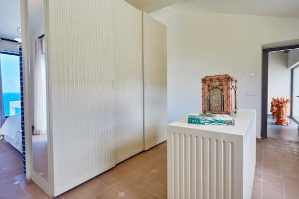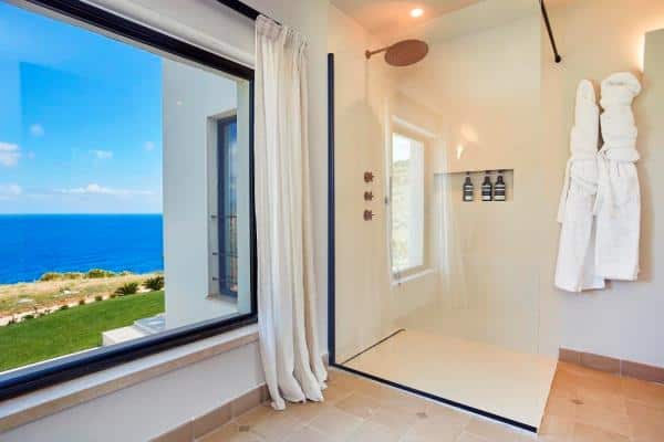 The house, which is clean, white and modern but with a few characteristically rustic features, is built over 2 floors, and can accommodate up to 8 people across 4 en suite bedrooms. Large windows perfectly frame the surrounding coastal scenery, especially in the living room, with its double-height ceiling. The master bedroom is the jewel of the property, with its walk-in wardrobe, ceramic bathtub and multiple viewpoints; the most breath-taking of which offering an uninterrupted perspective over the Mediterranean Sea.