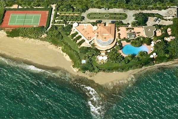 There are a total of 9 luxurious double bedrooms en suite within this luxurious villa and up to 18 guests can enjoy supreme comfort in all the rooms. The bedroom suites – four in the West Wing and five in the East Wing – also offer fine sea views. The grounds of this villa measure up to a generous 7,000 sq. m, which means there are many quiet areas within the gardens where you can relax in seclusion. Also, not only is the pool heated but there is also an outdoor Jacuzzi in which to lay back and relax in the sunshine, sounds and scents of the Mediterranean. Security gates on the east and west side of the property open to the beach and a private tennis court is on a front side of the property.