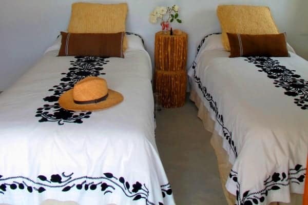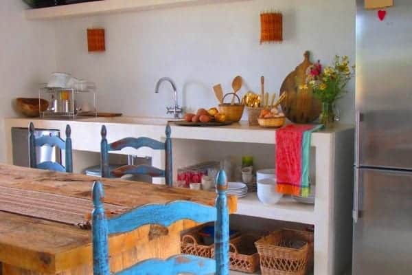 Sleeping a maximum of 8, this special luxury retreat offers 4 bedrooms including a master and every room within the villa has direct access out into the garden. This is a super holiday retreat for relaxing with a good book or in which to chill out in the company of friends in tasteful private luxury. The beautiful scenery is ever present through the marvellous panorama provided by the villa’s location; whether from the rectangular nave of the living room and out onto terrace and garden and from the comfort of either weathered armchairs, hammocks made of leaves or poolside sun beds. As discrete lighting illuminates the exterior walls, nighttime meals and gatherings on the terrace add yet another dimension to general air of timeless tranquility.
