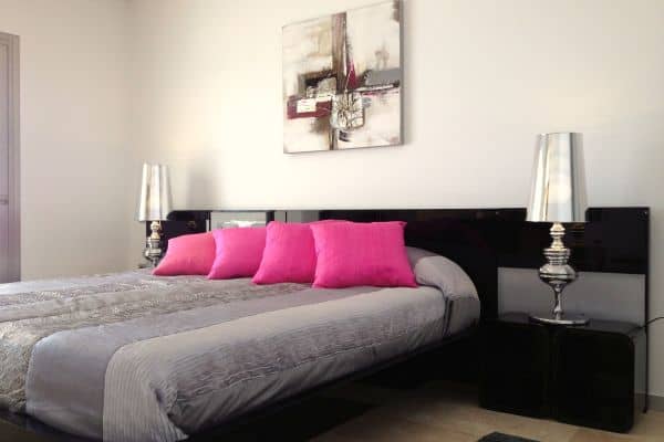 | First floor: | Master double bedroom en bedroom en suite (bath and shower) with private terraces and seaview; double bedroom en suite with private terraces and seaview |