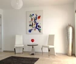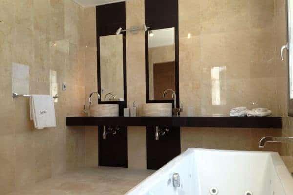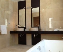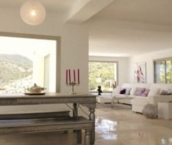 Distributed on 3 levels, the villa has 6 bedrooms en suite with air conditioning and sleeps a capacity of 12. There are uniquely 2 large master bedroom suites: one on the lower level and one on the upper level, which slides open to a huge sea view terrace. The other upper floor bedroom has the added luxury of 2 full baths, while 2 of the 3 bedrooms on the lower level open to large private terraces with splendid vistas. The bathrooms are suitably appointed and clad in marble and the large kitchen is fully equipped for preparing meals for the family and friends, which can be enjoyed inside and outdoors at the long marble table. There is a delightful choice of spaces in which to enjoy blissful rest and relaxation, including poolside bedecked with loungers and artful sunbeds.