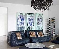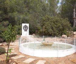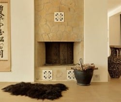 The villa is composed of 5+1 bedrooms (2+1 of which are totally independent from the main building) and has a maximum capacity of 12 guests. During the day, you will love to spend hours by the alluring saltwater pool which is as practical –floating steps separate the child-friendly shallow end from the deeper indigo water– as it is pretty – slate on the outside and green mosaic inside, beautifully lit at night. Or relaxing in the chill out areas scattered around its lovely landscaped grounds and 300 sq. m of sandstone terraces. As the sun sets, the light system will provide that special ambience for you to relax and unwind. By night, the changing colours of the pool illumination provide a relaxing and unruffled atmosphere making it, in our opinion, one of Ibiza’s most attractive and tranquil villas. And in those chilly nights, you will love the living area and its fireplace.