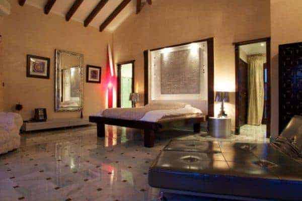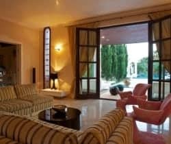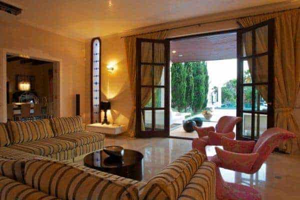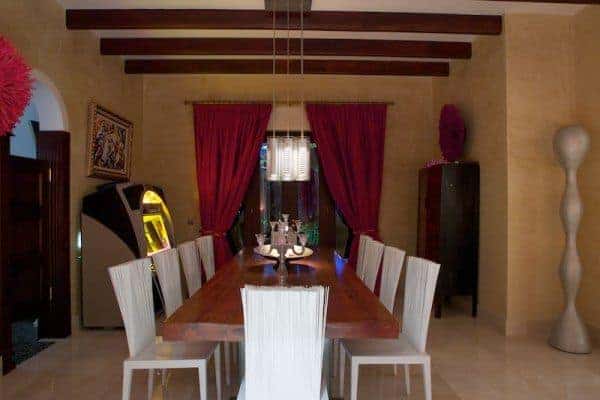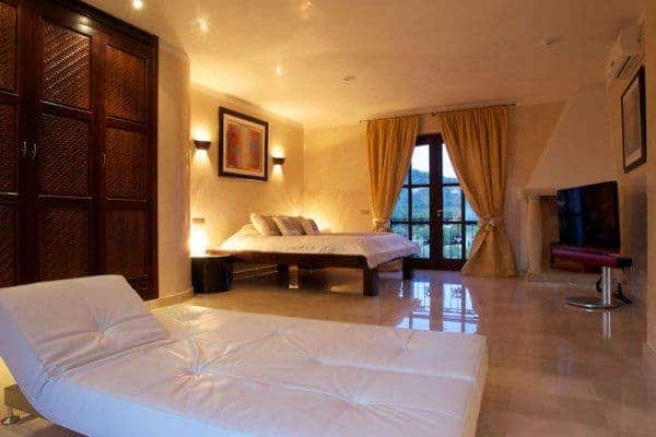 Lying on the exclusive southern coastline above Cala Jondal is a luxury villa and sprawling retreat for anyone seeking sheer elegance and privacy on iconic Ibiza Island. Built in 2004 by its British owner, the detached villa is one of the few high-fenced properties in Ibiza and offers serious privacy and a great sense of seclusion. The villa is a “stand out”, finished beautifully in polished plaster walls and ceilings, polished, cooling marble floors, and the most advance standard of fittings and fixtures: full air conditioning system, under-floor heating for when required (which is not often), sound system throughout the house and top-end games consoles and entertainment gadgets. The furniture and appointments are comfortable and on-trend and, once a guest here, you may simply never feel the need to leave the villa. If you do, then nearby is the extremely fashionable beach of Cala Jondal – considered one of the coolest on the island and offering a sheltered bay, much colour and popular celebrity hangouts, such as Blue Marlin, Yemanjá and Tropicana.