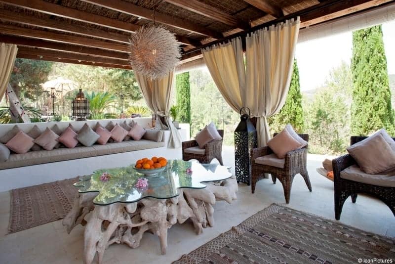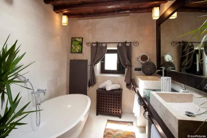 The North of the island of Ibiza is widely considered to be the perfect location for those Ibiza connoisseurs that understand that they do not need to be close to the action to enjoy it whenever they feel like, as it perfectly combines the advantages of an isolated retreat with the proximity to everything (irrespective of where your villa is located, you will need a vehicle to move around the scattered points of interest on Ibiza). And a few owners take their time in uncovering hidden gems that they painstakingly nurture and refurbish to a new life of splendour. This luxury retreat used to be an old chapel dating back to the XV Century! Located near San Miguel, in a beautiful area with a wonderful view over the valley, this luxury villa has been designed and decorated to the highest standards and reflects the personal taste of its owners, who spend large periods in Bali during the winter months, blending the building element s of Ibiza’s finca style with a contemporary touch and Asian influences, with a profusion of volcanic stone, teak wood and marble.