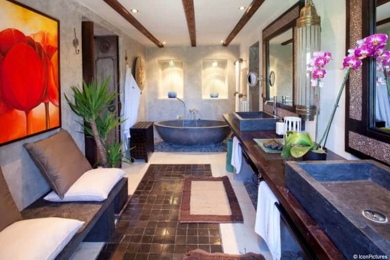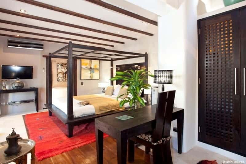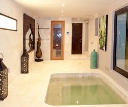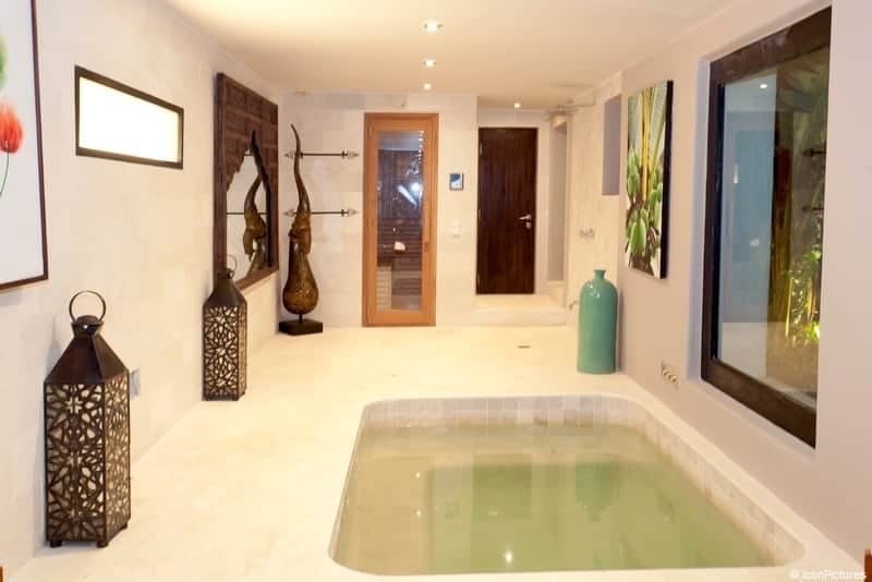 Spanning over 700 sq. m, the property consists of 8 fully equipped bedrooms with en suite bathrooms. Despite its maximum capacity being 16 guests, there are plenty of chill out and convivial areas that ensure that you can enjoy some moments on your own if you so wish. It has all the comfort elements that one would expect of a top-rated villa: large indoor and outdoor lounges, a swimming pool with solarium, massage room, sauna… The outdoor areas have been planned to provide ease, wellbeing and relaxation: many chill-out areas, Balinese daybeds and tropical gardens will make you reluctant to leave the villa. If that were not enough, guests will have full access to the spa facilities of Atzaró, a luxury inland retreat.