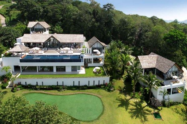 Finished in late 2008 and located in the sought-after Surin Beach on the west coast of Phuket, this magnificent villa boasts eye-catching views over Surin and Bang Tao beaches. Built on a 4,800 sq. m plot of land, the house affords gorgeous sunsets over the Indian Ocean, thanks to its North West orientation and its standing high above the bay. Despite its traditional Thai structure, the villa has a contemporary design, including pieces from Bali, China, the United States and Thailand. The luxury villa has two separate buildings, each with its own swimming pool, with a total internal and external surface of over 2,200 sq. m. The villa provides a sumptuous, intimate and idyllic location for a dream holiday thanks to its extensive grounds, lush lawns, and stunning panoramic views of the bay which create a magical setting. The villa is set in a gated community with 24-hour estate security combining exclusivity and privacy with a central location on the island.