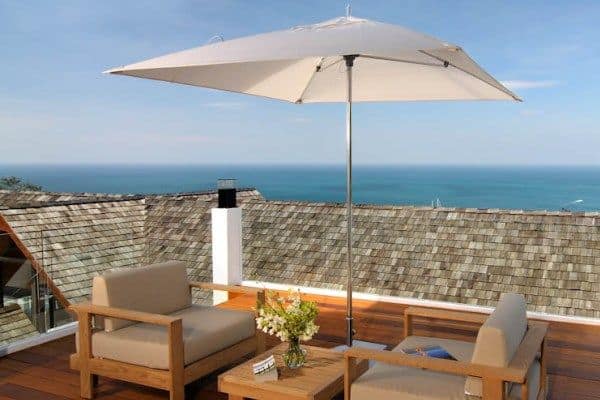 The first villa has 4 double en suite bedrooms; the second villa has 2 double en suite bedrooms for a total of 12 people, all with a sea view. If the outdoor is your heaven, you will be able to chill out on the teak chairs which provide a cool place to sit and read under the canopies, while the expansive pool deck, with Dedon beds, provides the perfect spot to top up your tan or snooze under the umbrellas. If you prefer a more active evening, fine tune your chipping and putting in the 30-meter all-weather area, work out in the gym, enjoy some laps in the 22-meter swimming pool or play a game at the pool table or the darts board. If you are a movie aficionado, you will enjoy the 50 inches plasma screen in the TV room. The Balinese outdoor wooden table seats 12 and is ideal for al fresco dining or a lazy breakfast, while the indoor dining room offers a cooler option. Four of the six bedrooms have their own deck areas, with their own outdoor furniture, for more intimate and private use. The upstairs sitting room opens out and is the perfect place to invite friends over or relax before dinner. Indoor and outdoor living areas are equipped with Bose sound systems as well as iPod docking stations.