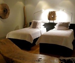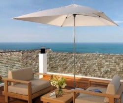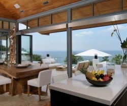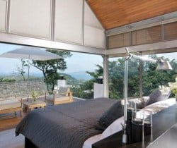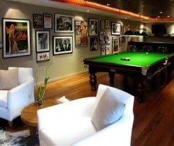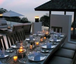 The first villa has 4 double en suite bedrooms; the second villa has 2 double en suite bedrooms for a total of 12 people, all with a sea view.  If the outdoor is your heaven, you will be able to chill out on the teak chairs which provide a cool place to sit and read under the canopies, while the expansive pool deck, with Dedon beds, provides the perfect spot to top up your tan or snooze under the umbrellas.  If you prefer a more active evening, fine tune your chipping and putting in the 30-meter all-weather area, work out in the gym, enjoy some laps in the 22-meter swimming pool or play a game at the pool table or the darts board.  If you are a movie aficionado, you will enjoy the 50 inches plasma screen in the TV room.  The Balinese outdoor wooden table seats 12 and is ideal for al fresco dining or a lazy breakfast, while the indoor dining room offers a cooler option.  Four of the six bedrooms have their own deck areas, with their own outdoor furniture, for more intimate and private use.  The upstairs sitting room opens out and is the perfect place to invite friends over or relax before dinner.  Indoor and outdoor living areas are equipped with Bose sound systems as well as iPod docking stations.