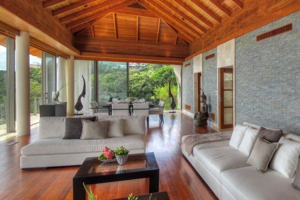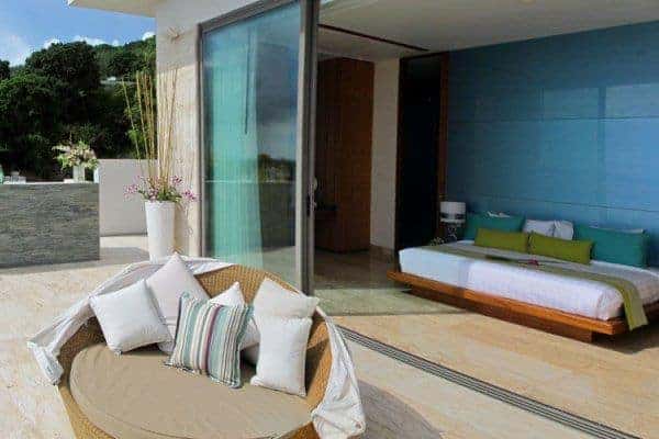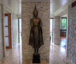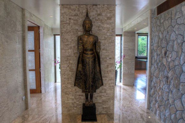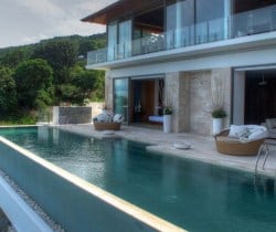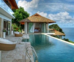 With 6 coloured en suite bedrooms sleeping up to 12 people, a huge cinema and games room with billiard table, a master European and a Thai kitchen, a long pool with an outdoor bar and a private living overlooking the Andaman Sea, this villa offers the ultimate lifestyle opportunity. A lovely massage sala with extra wide luxury massage couches and 4 full glass sliding doors that open to the sea breeze let you enjoy in-villa beauty treatments. Unrivalled sea and sunset views set the scene for ultra fine living and a completely private, man-made beach, enhance the choice of how to enjoy the fantastic sea landscape. The décor is typically Asian, seen especially in the wooden beamed ceilings and in the choice of upholstery and colours, while touches of European style furniture and design can also be found.