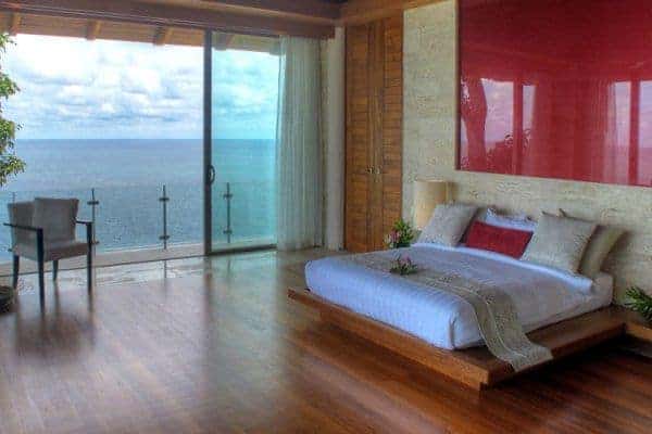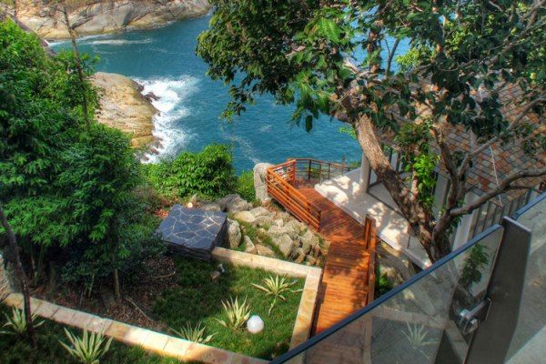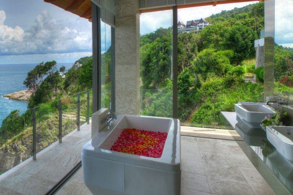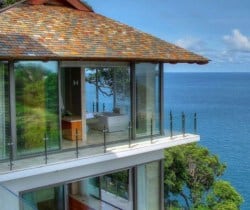Situated on a dramatic and secluded oceanfront headland on Phuket’s ‘Millionaires Mile’, this extraordinary, huge, five-level villa sets a luxury standard as one of the Asian finest oceanfront villas. The property represents a world-class residence of outstanding design and location that offers the freedom of a private and secure luxury lifestyle just a short drive to the island’s best beaches, restaurants, golf courses, shopping and nightlife. The villa was recently completed by Paris-based architect Arte Charpentier, after three years of careful planning and construction. Every component of this grand estate has been looked after. Modern Asian-style architecture blends with functional elements of Western design to present a superior, contemporary tropical abode. The stunning views of the sea are enjoyed from almost every room, whether a bedroom, a bathroom or the living areas. The floor-to-ceiling sliding doors open up to terraces and grant a sheer jaw-dropping view down the hill to the sea, over the rugged coastline.