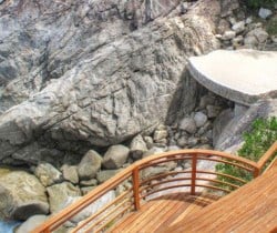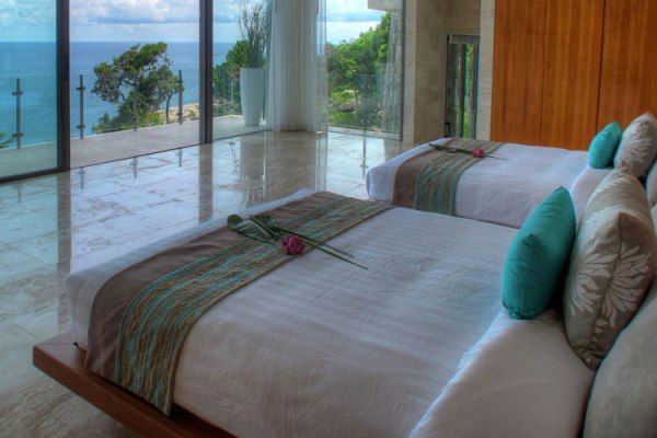 | Level 4: | Twin (2 queen size beds) bedroom en suite with dual closets, lounge couch, panoramic ocean view, balcony; double bedroom en suite with built-in closet and dressing area, 270-degree ocean view, wrap-around deck, lift access to lower levels |