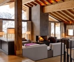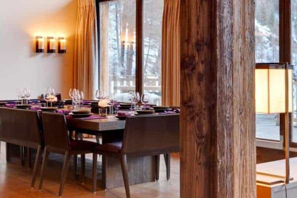 designed by the renowned interior architect Magali de Tscharner, with features such as reclaimed wood and large panoramic windows, which create a grand and bright ambiance: the modern contemporary style, with the highest quality natural fabrics, is counterbalanced by the symmetry of the furniture which enhances the feeling of warmth and luxury.